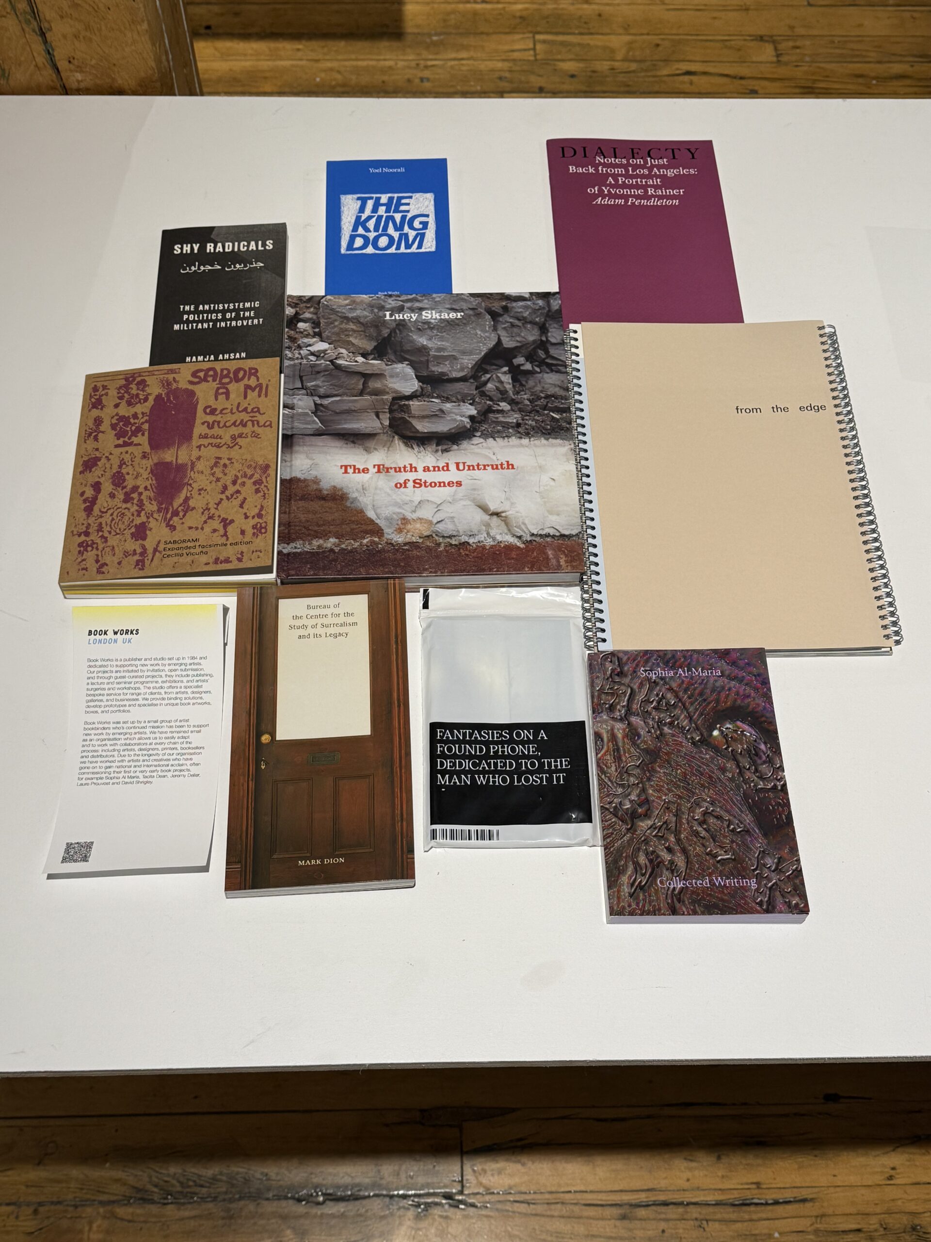 Book Works is a publisher and studio set up in 1984 and dedicated to supporting new work by emerging artists. Our projects are initiated by invitation, open submission, and through guest-curated projects, they include publishing, a lecture and seminar programme, exhibitions, and artists’ surgeries and workshops. The studio offers a specialist bespoke service for range of clients, from artists, designers, galleries, and businesses. We provide binding solutions, develop prototypes and specialise in unique book artworks, boxes, and portfolios.