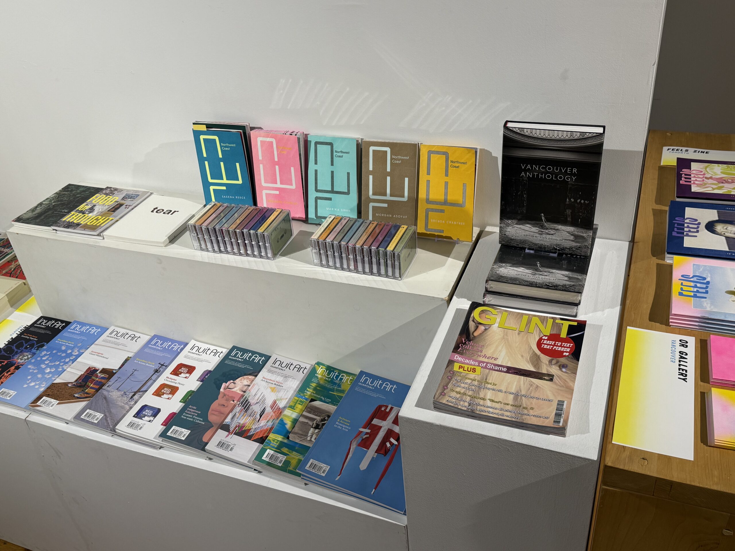 Or Gallery publishes artist books, editions and anthologies, and since 2010, has operated a small bookstore featuring local, small press and imported publications. The gallery also works with both formal educational institutions and community-based organizations to support mentorships and internships. Reciprocal learning and mentorship are a significant focus of gallery programming, with projects such as Schooling the Institution, Dominique Fontaine’s Curating While Black, and the 2024-2025 Indigenous-led public art fellowship, with Faith Sparrow-Crawford, Salia Joseph and Jade George, of HOST collective.